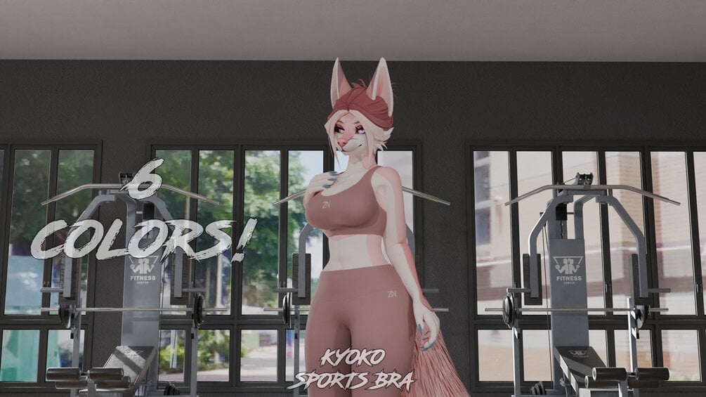Sports bra set for the Kyoko base by FoxiPaws! Goes perfectly with Kyoko Leggings! Supports Quest and includes 6 different colors! It is very simple to set up as long as you have VRCFury. Just drag the prefabs into one of the Kyoko avatars in the default Kyoko scene and upload! To change the colors just go to the materials folder and drag-and-drop the color you like onto the leggings!