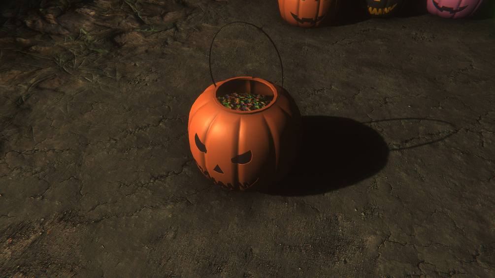 A pumpkin basket (4 similar meshes) and 20 materials to be used in VRChat, as an acessory or a prop, or Unity.