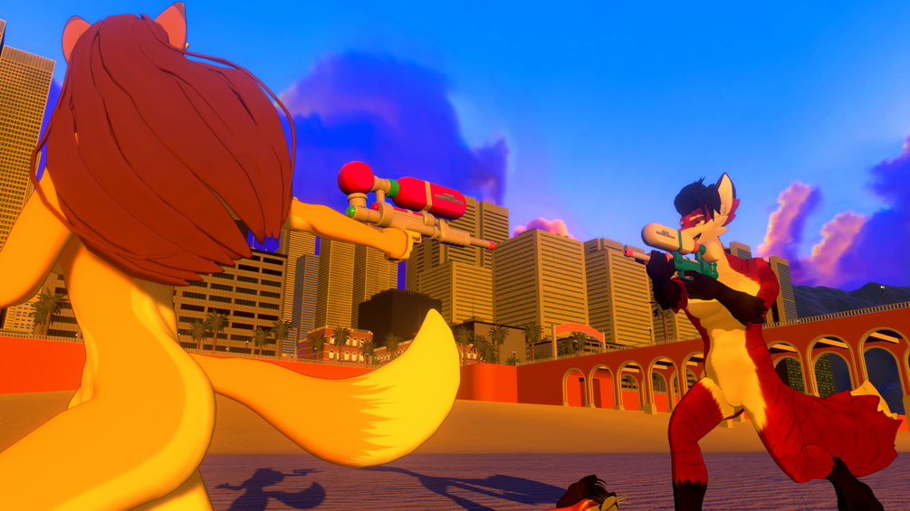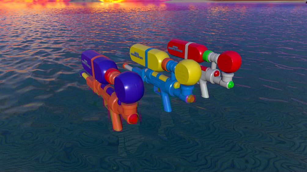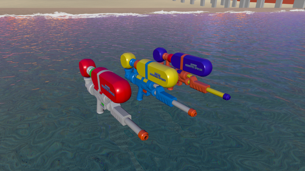 Continue the summer vibes with this set of Vibrant colored water guns! Can be used as a VRChat avatar prop or for worlds! PC and Quest versions included!